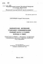 Экономическое обоснование стабильного функционирования угольной шахты в условиях перехода к рынку тема диссертации по экономике, полный текст автореферата