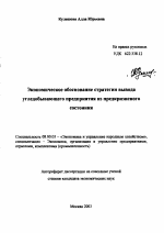 Экономическое обоснование стратегии вывода угледобывающего предприятия из предкризисного состояния тема диссертации по экономике, полный текст автореферата