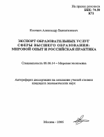 Экспорт образовательных услуг сферы высшего образования: мировой опыт и российская практика тема диссертации по экономике, полный текст автореферата