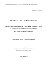 Эволюция российской крестьянской общины как экономического института в пореформенный период тема диссертации по экономике, полный текст автореферата