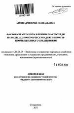 Факторы и механизм влияния макросреды на внешнеэкономическую деятельность промышленного предприятия тема диссертации по экономике, полный текст автореферата