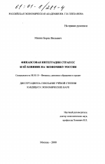 Финансовая интеграция стран ЕС и ее влияние на экономику России тема диссертации по экономике, полный текст автореферата