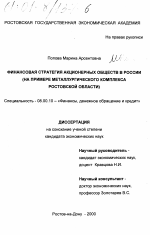 ФИНАНСОВАЯ СТРАТЕГИЯ АКЦИОНЕРНЫХ ОБЩЕСТВ В РОССИИ (НА ПРИМЕРЕ МЕТАЛУРГИЧЕСКОГО КОМПЛЕКСА РОСТОВСКОЙ ОБЛАСТИ)