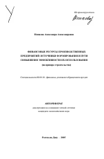Диссертационная работа на тему Финансовые ресурсы производственных предприятий: источники формирования и пути повышения эффективности их использования (на примере строительства) выпонена в рамках Паспорта специальности ВАК 08.00.10 - финансы, денежное обращение и кредит, раздела 3. Финансы предприятий и организаций; п. 3.3. Критерии и