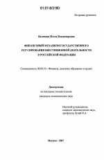 Финансовый механизм государственного регулирования инвестиционной деятельности в Российской Федерации тема диссертации по экономике, полный текст автореферата