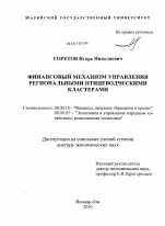 Финансовый механизм управления региональными птицеводческими кластерами тема диссертации по экономике, полный текст автореферата