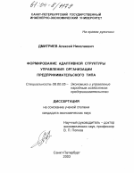 Формирование адаптивной структуры управления организации предпринимательского типа тема диссертации по экономике, полный текст автореферата
