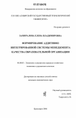 Формирование аддитивно интегрированной системы менеджмента качества образовательной организации тема диссертации по экономике, полный текст автореферата