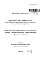Формирование эффективной стратегии развития и управления конкурентоспособностью металургических предприятий тема диссертации по экономике, полный текст автореферата