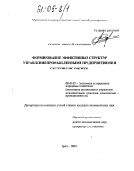 Формирование эффективных структур управления промышленными предприятиями и системы их оценки тема диссертации по экономике, полный текст автореферата