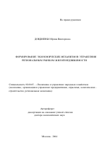 ФОРМИРОВАНИЕ ЭКОНОМИЧЕСКИХ МЕХАНИЗМОВ УПРАВЛЕНИЯ РЕГИОНАЛЬНЫМ РЫНКОМ ЖИЛОЙ НЕДВИЖИМОСТИ