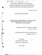 Формирование и эффективность использования инвестиционных ресурсов в условиях рыночной трансформации тема диссертации по экономике, полный текст автореферата