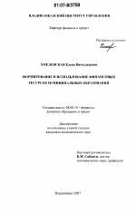 Формирование и использование финансовых ресурсов муниципальных образований тема диссертации по экономике, полный текст автореферата
