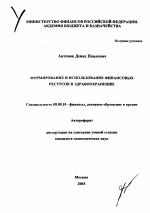 Формирование и использование финансовых ресурсов в здравоохранении тема диссертации по экономике, полный текст автореферата