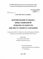 Формирование и оценка инвестиционной привлекательности высшего учебного заведения тема диссертации по экономике, полный текст автореферата