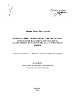 Автореферат диссертации по теме "Формирование и продвижение кредитных продуктов на рынок как факторы конкурентоспособности коммерческого банка"