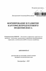 Формирование и развитие картофелепродуктового подкомплекса тема диссертации по экономике, полный текст автореферата