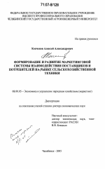 Формирование и развитие маркетинговой системы взаимодействия поставщиков и потребителей на рынке сельскохозяйственной техники тема диссертации по экономике, полный текст автореферата