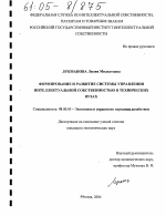 Формирование и развитие системы управления интелектуальной собственностью в технических вузах тема диссертации по экономике, полный текст автореферата