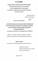 Формирование и реализация инвестиционной стратегии во взаимосвязи с функциональными стратегиями на предприятиях пищевой промышленности тема диссертации по экономике, полный текст автореферата