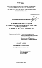 Формирование и реализация промышленно-инвестиционной политики на предприятиях машиностроительного комплекса тема диссертации по экономике, полный текст автореферата