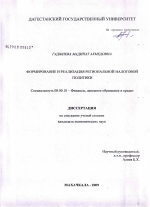 Формирование и реализация региональной налоговой политики тема диссертации по экономике, полный текст автореферата
