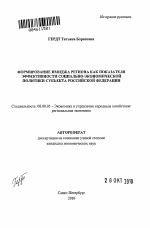 Формирование имиджа региона как показателя эффективности социально-экономической политики субъекта Российской Федерации тема диссертации по экономике, полный текст автореферата