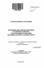 Формирование инновационной политики развития управляющих компаний жилищно-коммунальной сферы тема диссертации по экономике, полный текст автореферата
