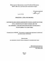 Формирование инновационной региональной системы отраслевой подготовки специалистов тема диссертации по экономике, полный текст автореферата