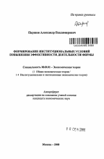Формирование институциональных условий повышения эффективности деятельности фирмы тема диссертации по экономике, полный текст автореферата
