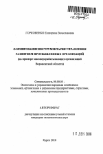 Формирование инструментария управления развитием промышленных организаций тема диссертации по экономике, полный текст автореферата