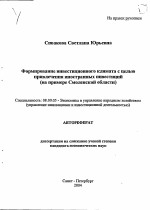Формирование инвестиционного климата с целью привлечения иностранных инвестиций (на примере Смоленской области)