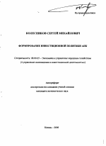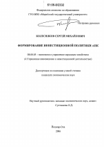 Формирование инвестиционной политики АПК тема диссертации по экономике, полный текст автореферата