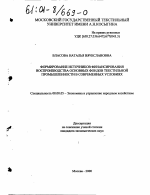 Формирование источников финансирования воспроизводства основных фондов текстильной промышленности в современных условиях тема диссертации по экономике, полный текст автореферата