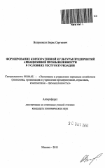 Формирование корпоративной культуры предприятий авиационной промышленности в условиях реструктуризации тема диссертации по экономике, полный текст автореферата