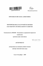 Формирование культурной политики как фактора регионального развития тема диссертации по экономике, полный текст автореферата