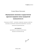 Формирование механизма государственной адресной поддержки малых предприятий промышленности тема диссертации по экономике, полный текст автореферата