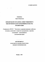 Формирование механизма инвестиционного обеспечения малого предпринимательства в полиграфии тема диссертации по экономике, полный текст автореферата