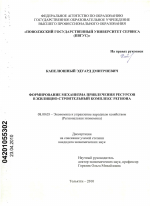 Формирование механизма привлечения ресурсов в жилищно-строительный комплекс региона тема диссертации по экономике, полный текст автореферата