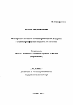 Формирование механизма снижения трансакционных издержек в условиях трансформации национальной экономики тема диссертации по экономике, полный текст автореферата