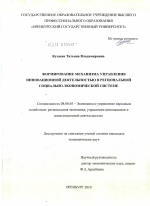 Формирование механизма управления инновационной деятельностью в региональной социально-экономической системе тема диссертации по экономике, полный текст автореферата