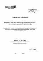 Формирование механизма управления жилищно-коммунальным хозяйством города тема диссертации по экономике, полный текст автореферата