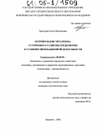 Формирование механизма устойчивого развития предприятия в условиях инновационной деятельности тема диссертации по экономике, полный текст автореферата