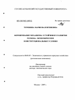Формирование механизма устойчивого развития региона: экономические и институциональные условия тема диссертации по экономике, полный текст автореферата