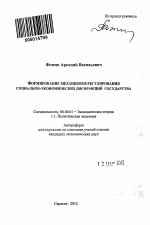 Автореферат диссертации по теме "Формирование механизмов регулирования социально-экономических дисфункций государства"
