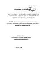 Формирование мотивационного механизма управления персоналом на предприятиях текстильной промышленности тема диссертации по экономике, полный текст автореферата