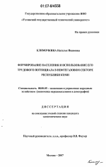 Формирование населения и использование его трудового потенциала в нефтегазовом секторе Республики Коми тема диссертации по экономике, полный текст автореферата