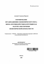 Формирование организационно-экономического механизма противодействия коррупции как фактора обеспечения экономической безопасности тема диссертации по экономике, полный текст автореферата