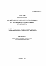 Формирование организационного механизма управления проектами жилищного строительства тема диссертации по экономике, полный текст автореферата