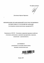 Формирование организационной структуры управления в соответствии со стратегией организации тема диссертации по экономике, полный текст автореферата
